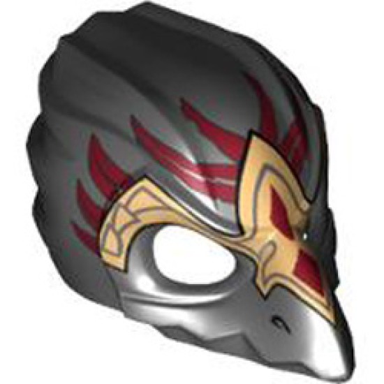 Black Minifigure, Headgear Mask Bird (Raven) with Gold Beak and Dark Red Markings Pattern