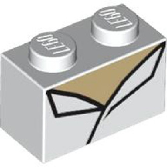 White Brick 1 x 2 with Black Lines and Tan Surface Pattern (BrickHeadz Jack Sparrow Chest)