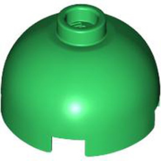 Green Brick, Round 2 x 2 Dome Top - Hollow Stud with Bottom Axle Holder x Shape + Orientation