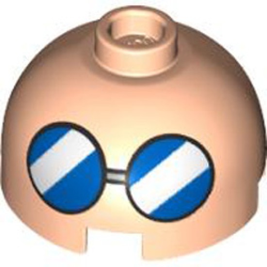 Light Nougat Brick, Round 2 x 2 Dome Top with Blue Glasses with White Diagonal Stripes Pattern