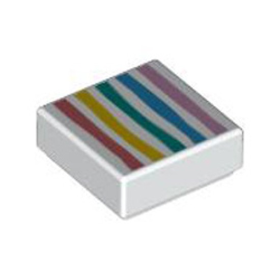 White Tile 1 x 1 with Coral, Yellow, Dark Turquoise, Dark Azure, and Bright Pink Rainbow Stripes Pattern