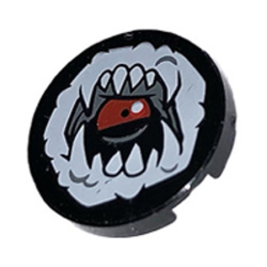 - Alternate Name: Black Tile, Round 2 x 2 with Bottom Stud Holder with White Open Mouth, Fangs and Tongue Pattern