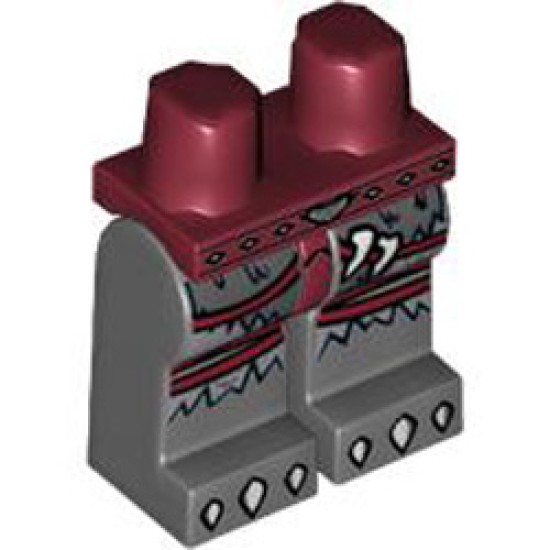 Dark Red Hips and Dark Bluish Gray Legs with Dark Red Straps, Fur and White Claws Pattern