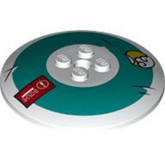 White Dish 6 x 6 Inverted (Radar) - Solid Studs with Scuffed Dark Turquoise Radial Background and Red Warning Label Pattern